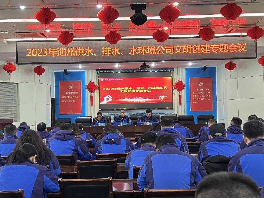 2月22日下午,池州供水、排水、水環(huán)境公司在供水四樓會議室召開創(chuàng)建全國文明城市專題會議。三家公司中層副職以上共60余人參加會議。會議由三家公司董事長楊觀樂主......